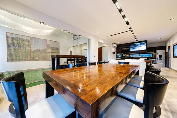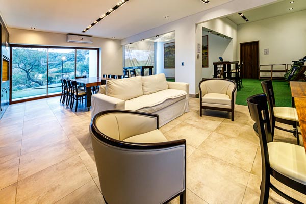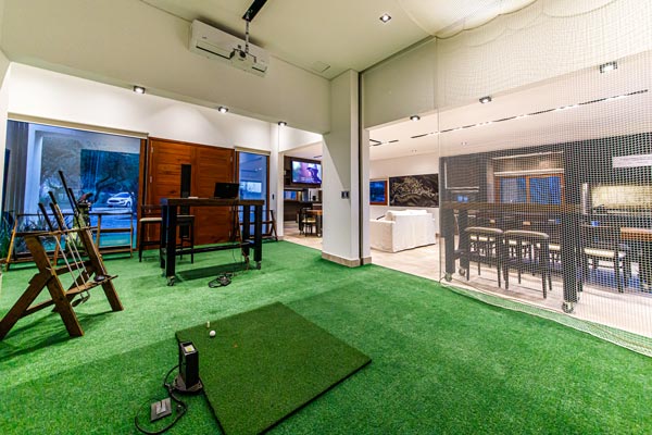 Incorporado al diseño de la casa, un simulador de última tecnología, para que vivas la experiencia de jugar en múltiples campos de golf y practica tus golpes de manera indefinida