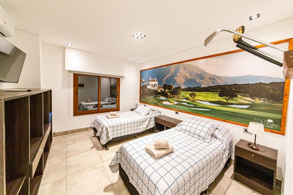 El sector privado está dispuesto en una sola ala, cuenta con 3 dormitorios, baños privados en suite, zonificados con amplia ducha y mampara. Las habitaciones cuentan con una ambientación única inspirada en famosos campos de golf del mundo, KINGSBARNAS GOLF LINKS, THE OCEAN COURSE y FINCA CORTESIN. Cada una con ropa de cama, almohadas y toallas, televisor LED, aire acondicionado frío calor, calefactor, también un placard abierto con capacidad de guardado